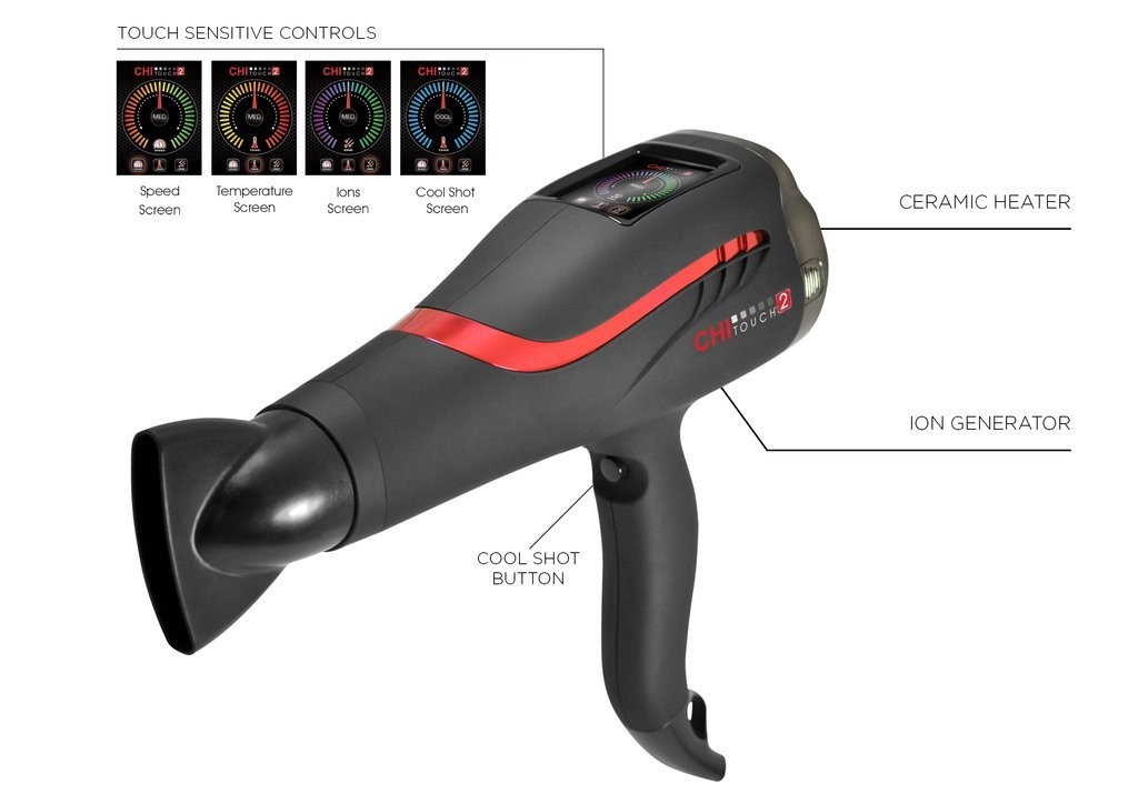 من خلال تصميم جديد لشاشة اللمس لمجفف الشعر تشي التي تمكنك من ضبط قياسات السرعة